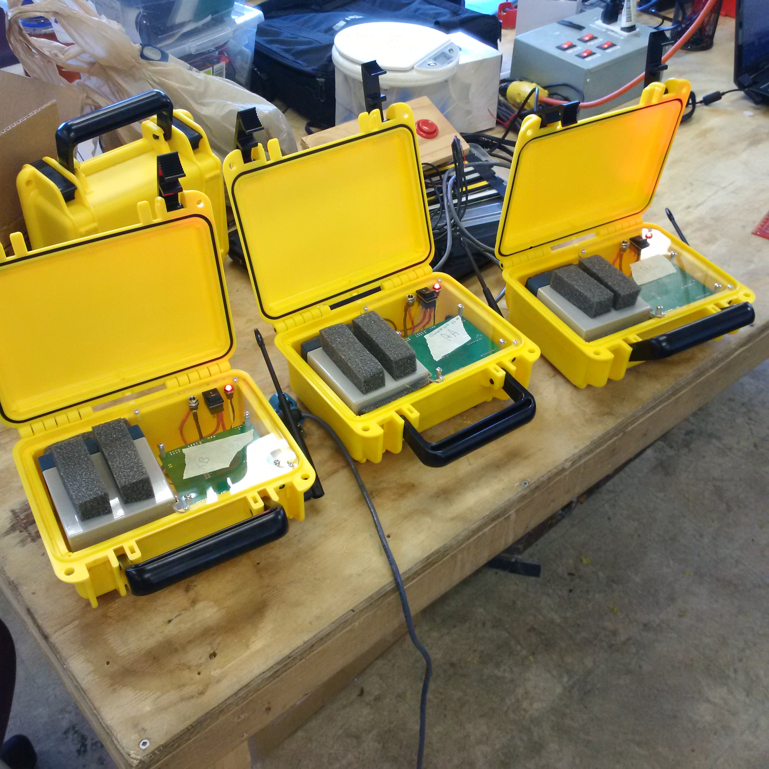 After that, we started talking about a grander scheme. The next game would consist of three bases with buttons and lights. Initially it was traffic lights, but it eventually became the light pole we ended up using. The biggest problem with this sort of “capture the flag” type game is having referees to keep score. If we could use technology to keep score, it frees up the refs so they can focus on fair gameplay. I had been using XBee devices in my “day job,” so decided they would work great for communication between the bases and the command centre.