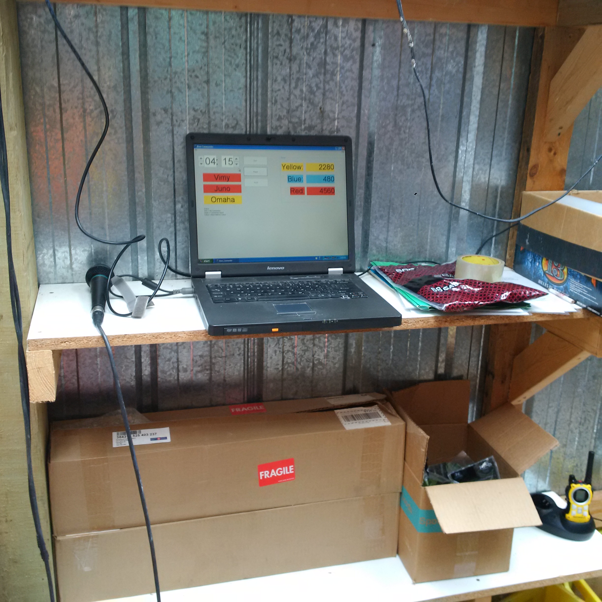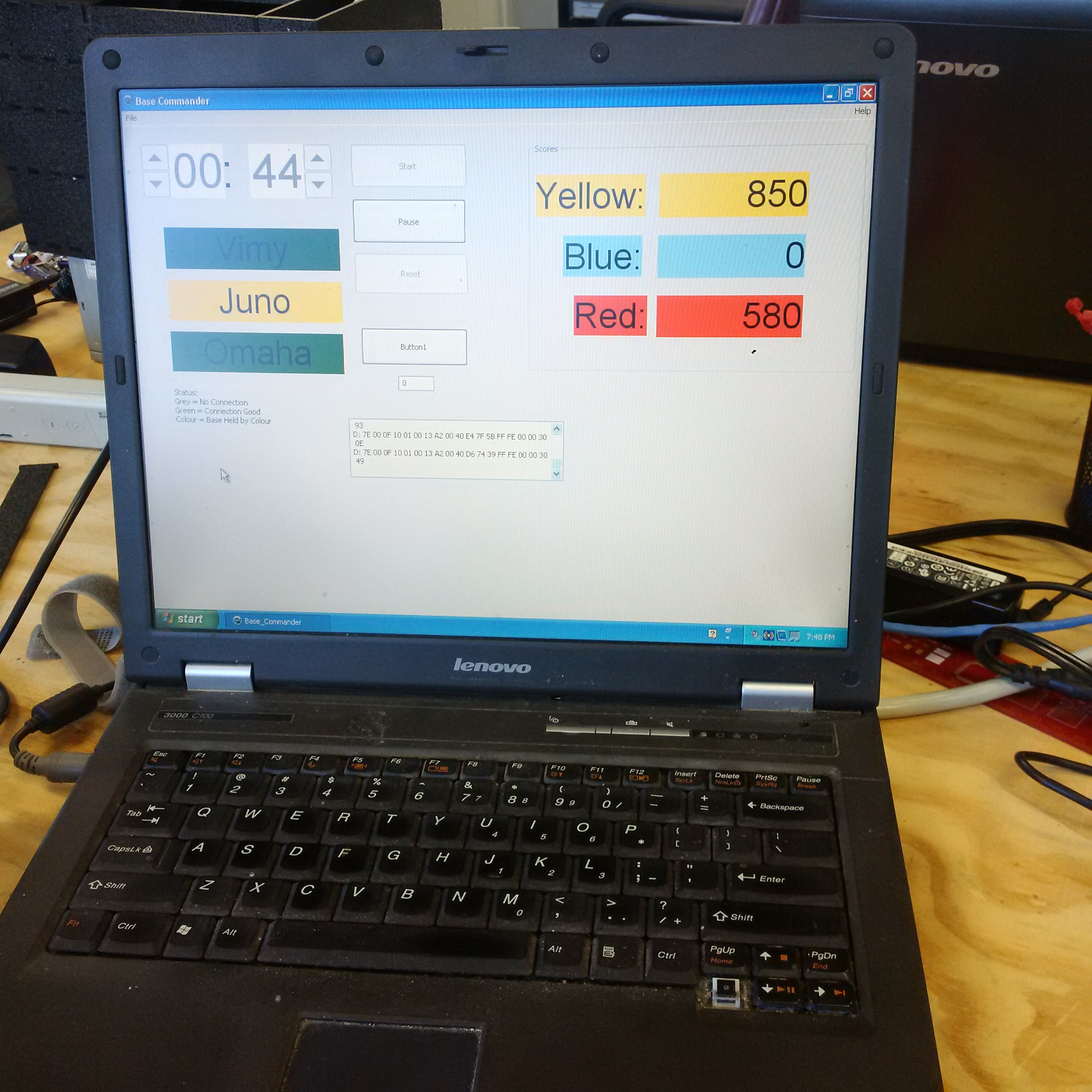 After the initial software developer fell through, I took it upon myself to write the command centre software as well. (I don’t claim to be a software guy — especially GUI applications.) The software monitors the bases throughout the timed game and counts up the score for each team while the base is held by them. It will also remotely reset the base states when starting a new game, and puts all the bases into “win mode” at the end of a game. (They slow blink the winning team colour and no longer respond to button presses until the next game is started.)