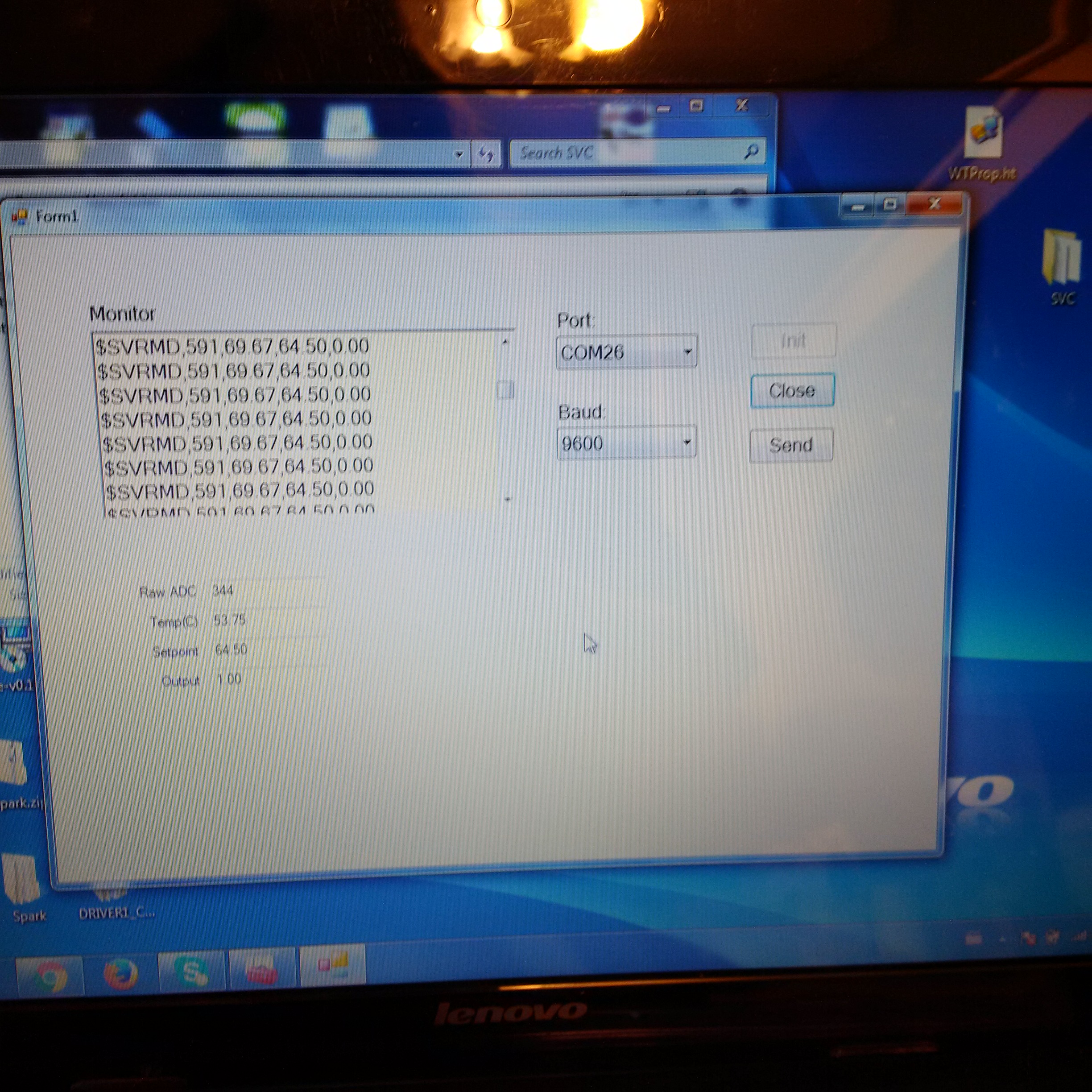 I am monitoring the whole thing over the USB/Serial port with a quickly hacked together windows application. Future plans including adjusting the setpoint and tuning the PID from this application.